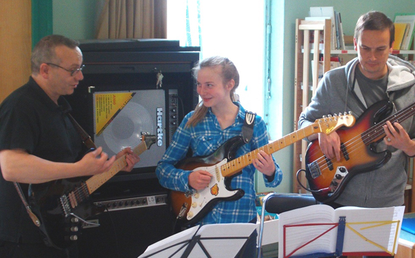 On y pratique la guitare ou la basse avec un travail sur des morceaux issus du répertoire des musiques actuelles.