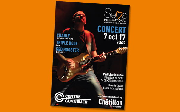 Samedi 7 octobre 2017 à 20h Du jazz au blues en passant par le rock Participation libre, bénéfices au profit de SEMS International. Buvette locale, snack international